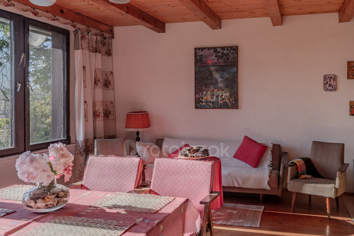 Murowany, piętrowy dom o powierzchni mieszkalnej 100 m² (plus piwnica i garaż) to kwintesencja przytulności. Wnętrza zachwycają naturalnymi materiałami: drewnianymi podłogami, sufitami oraz odsłoniętymi belkami konstrukcyjnymi.