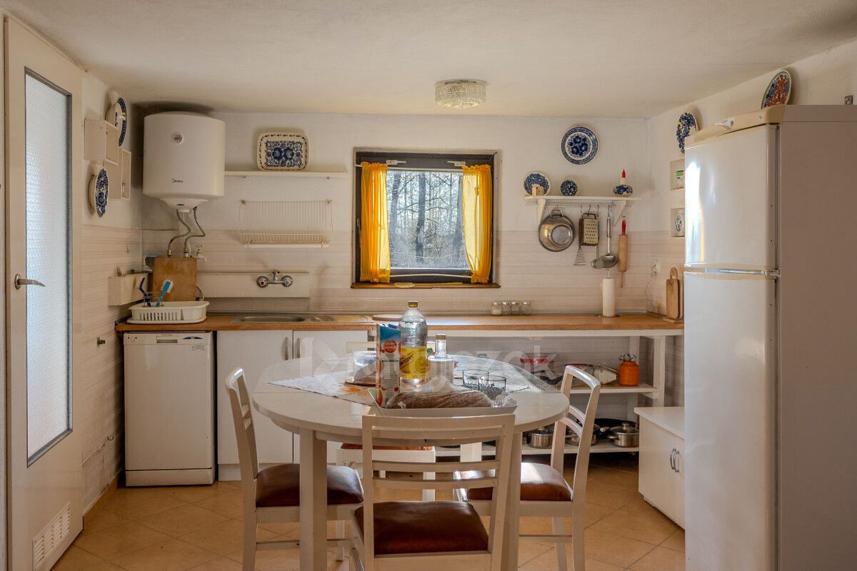 Dom murowany ok.100m² (plus piwnica ok.13m² i garaż ok.12,5m²).