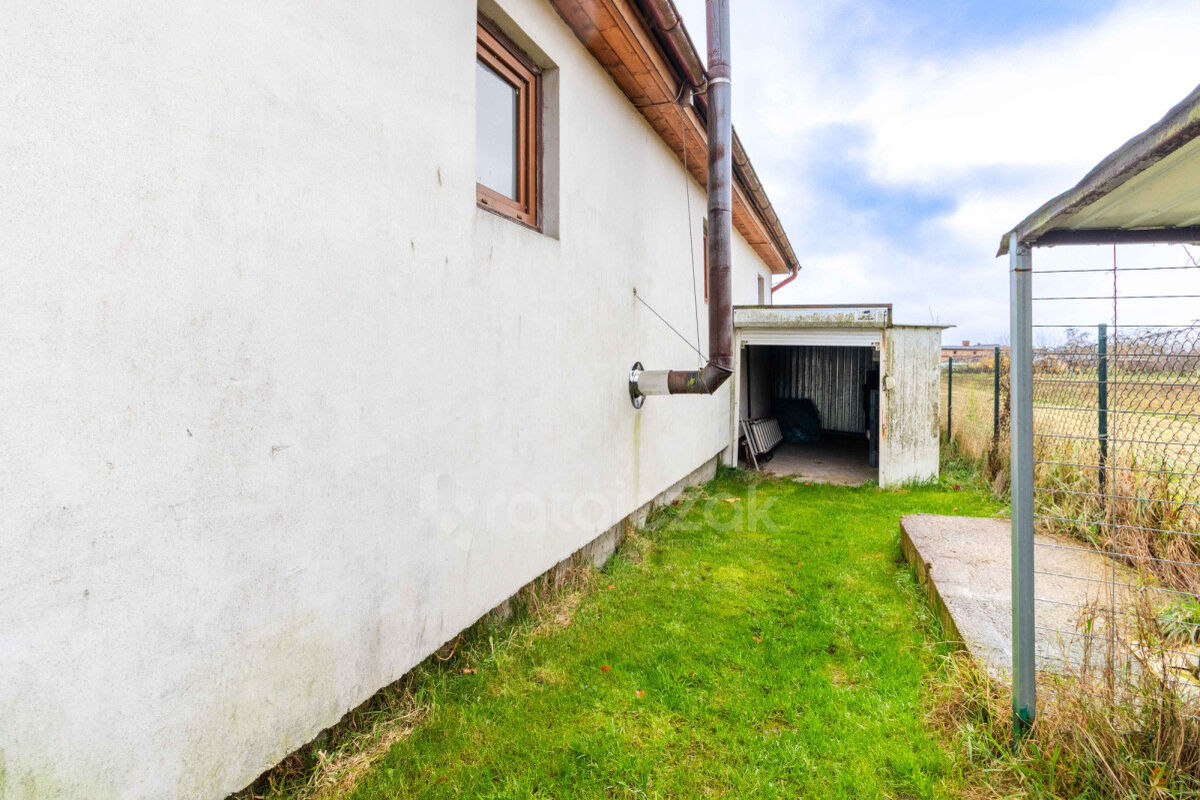 Działka ma powierzchnie 725 m², ma regularny kształt prostokątny, jest płaska, zagospodarowana trawnikiem, w pełni ogrodzona. Na jej terenie, tuż przy budynku mieszkalno-gospodarczym, znajdują się również praktyczne blaszane zabudowania pomocnicze: garaż oraz wiata ogrodowa.