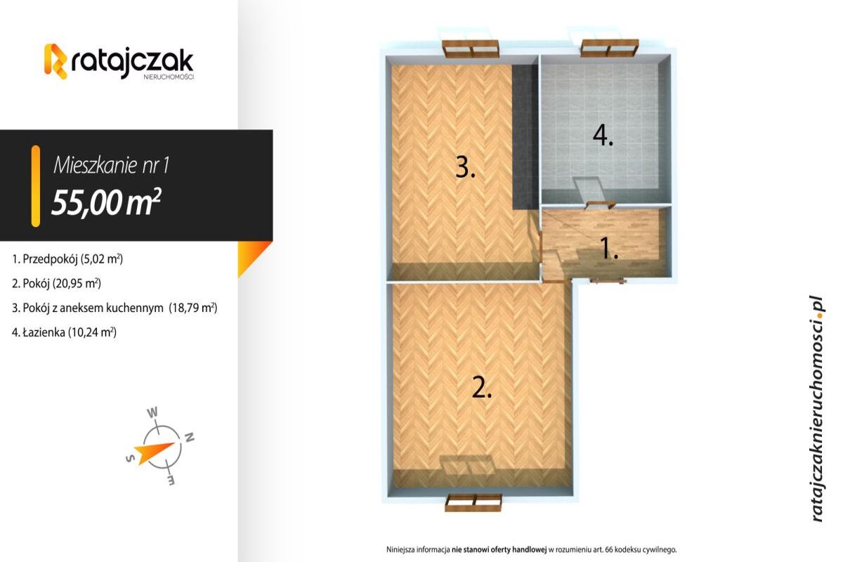 - Mieszkanie na 1 piętrze 55,05m2 do remontu w cenie 309 000 zł