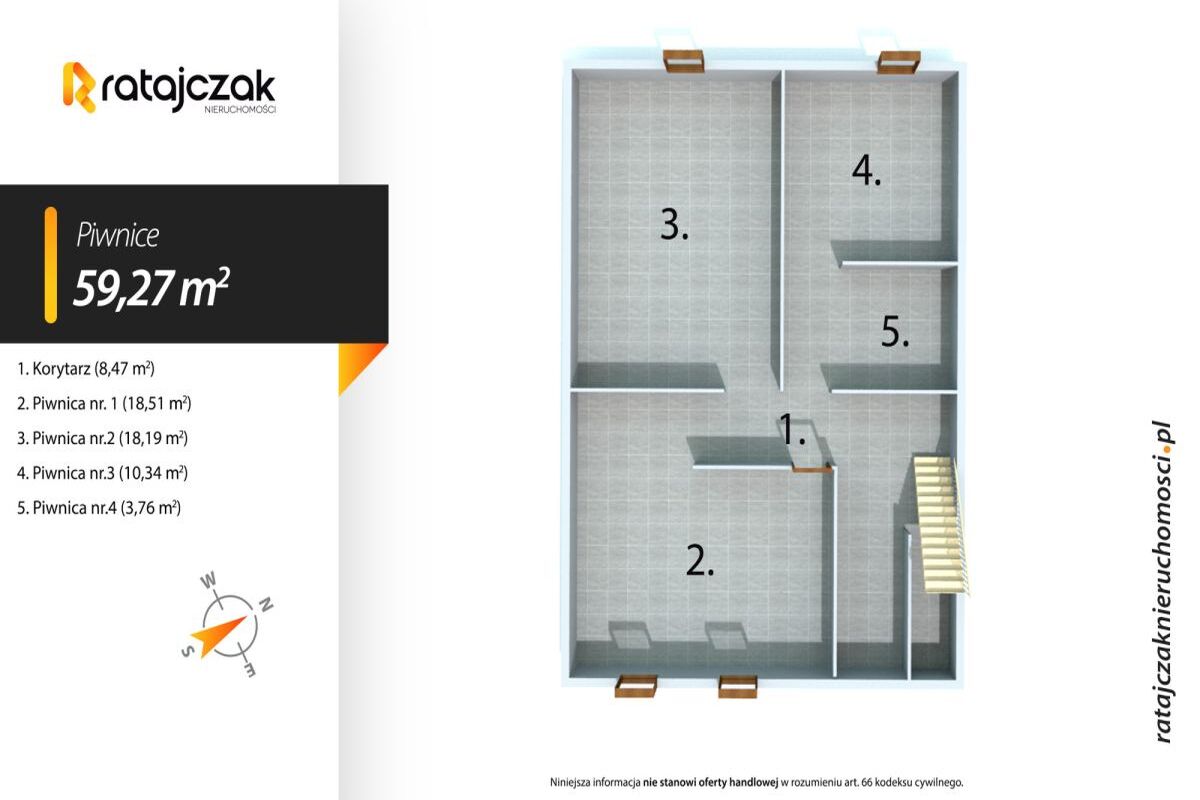 Piwnica w stanie do gruntownego remontu, do zrobienia przede wszystkim izolacja pozioma. W piwnicy utrzymuje się wilgoć, ponieważ w znacznej części piwnicy