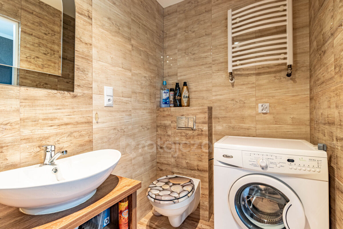 PARTER udostępnia 60 m2 powierzchni użytkowej, która została funkcjonalnie i gustownie zagospodarowana. Znajdują się na nim: