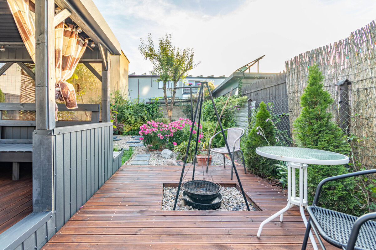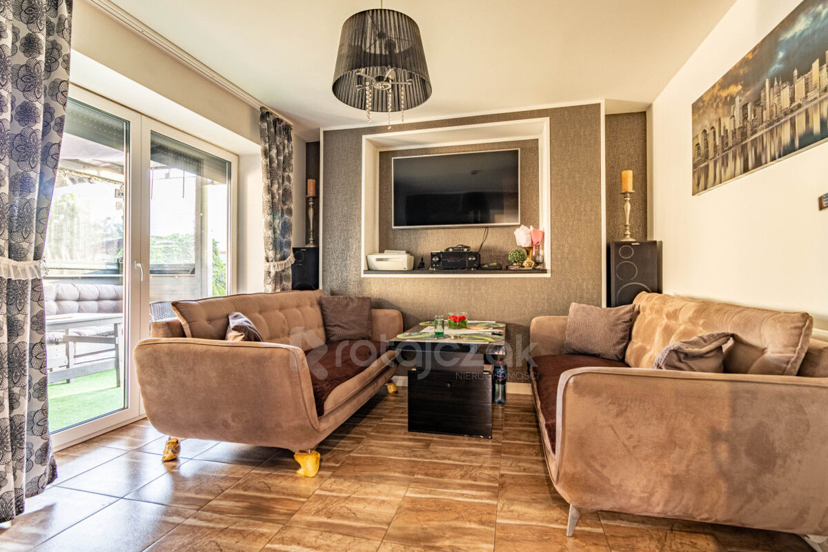 Z salonu wyjście wprost na taras, a z niego na ogród z ekspozycją południowo-zachodnią.