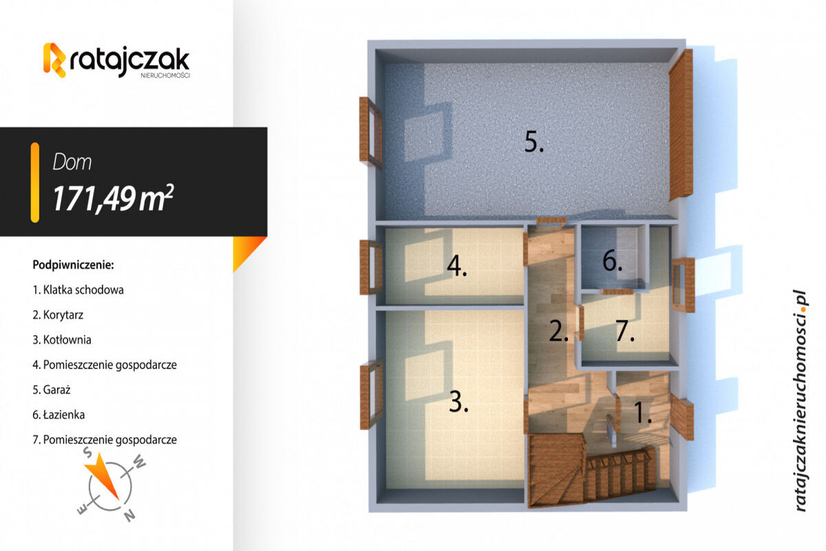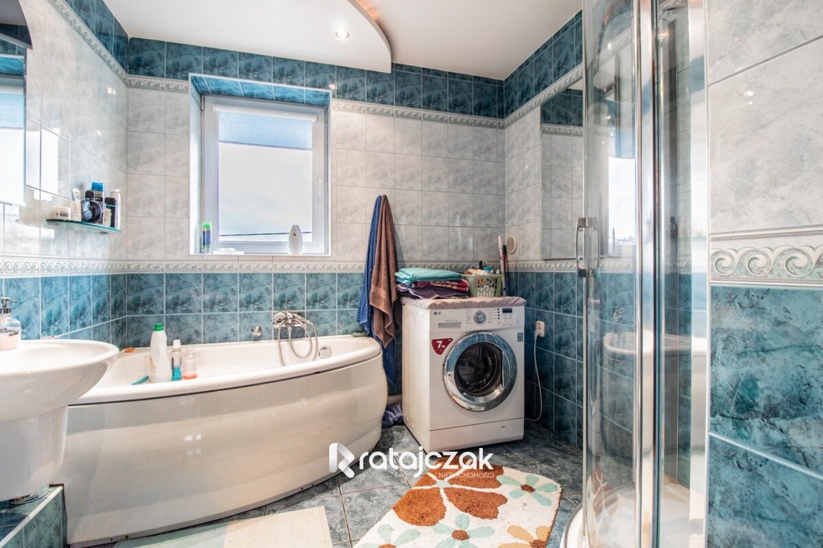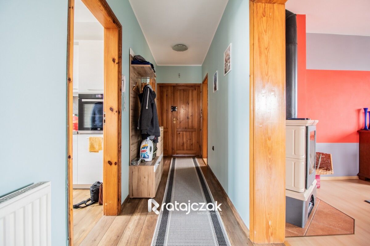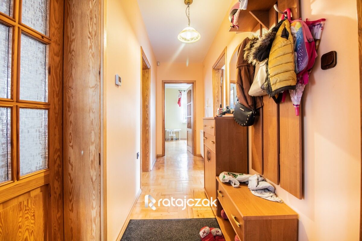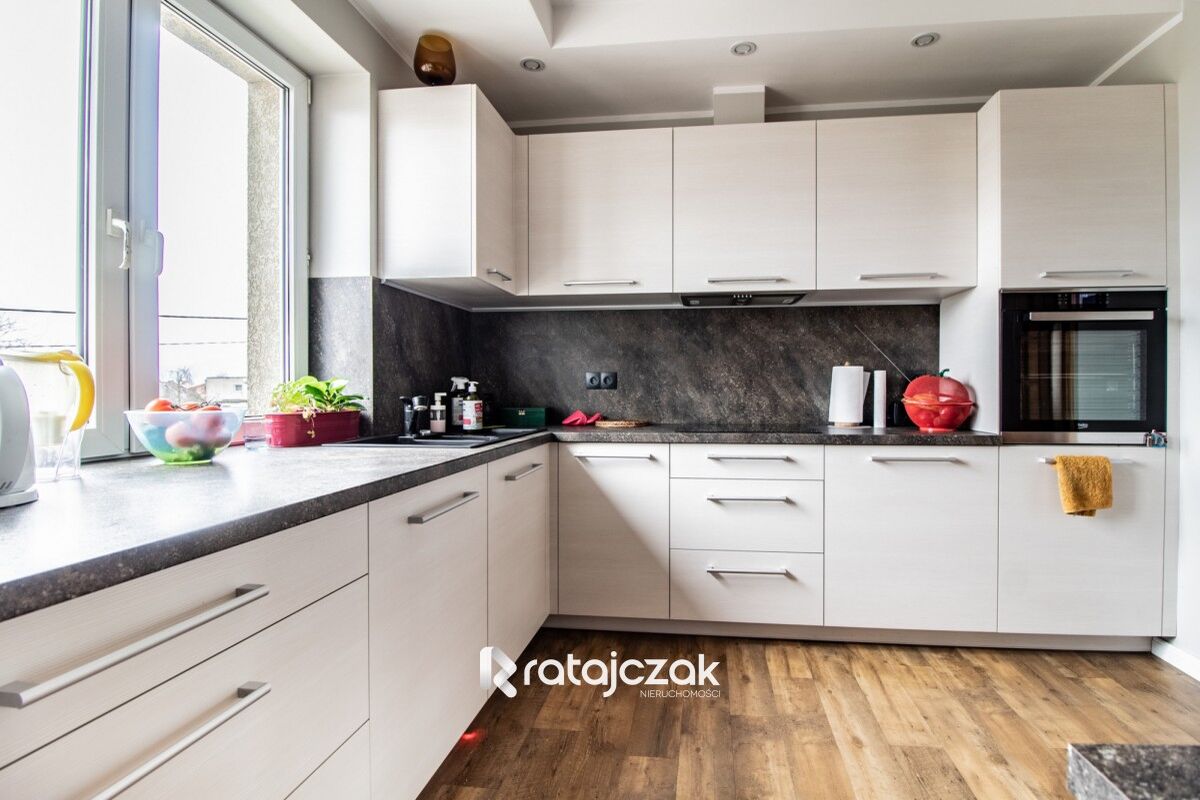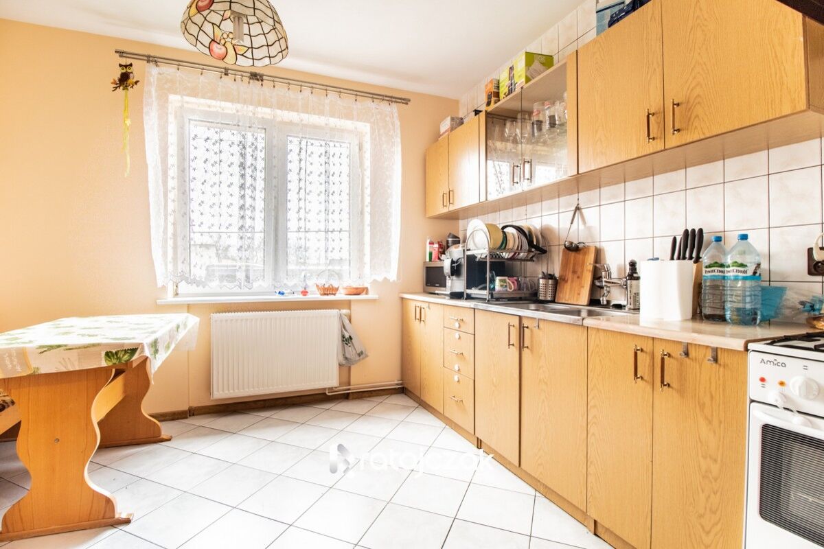 BUDYNEK: nieruchomość oddana do użytkowania w 2004 roku. Dom składa się z dwóch pięter oraz podpiwniczenia. Każde z pięter jest wykonane, jako osobne mieszkanie, które składa się z trzech pokoi, osobnej kuchni, łazienki oraz przedpokoju. Każde z mieszkań posiada własne liczniki prądu, wody, ogrzewania. W budynku znajduję się garaż dwustanowiskowy, kotłownia oraz pomieszczenia gospodarcze. W budynku wykonana została klatka schodowa, która umożliwia swobodny dostęp do każdego z mieszkań. Dom ogrzewany piecem gazowym, w mieszkaniu na piętrze znajduje się również kominek. W mieszkaniu na parterze, jako alternatywne ogrzewanie może wykorzystywać piec na węgiel oraz drewno.