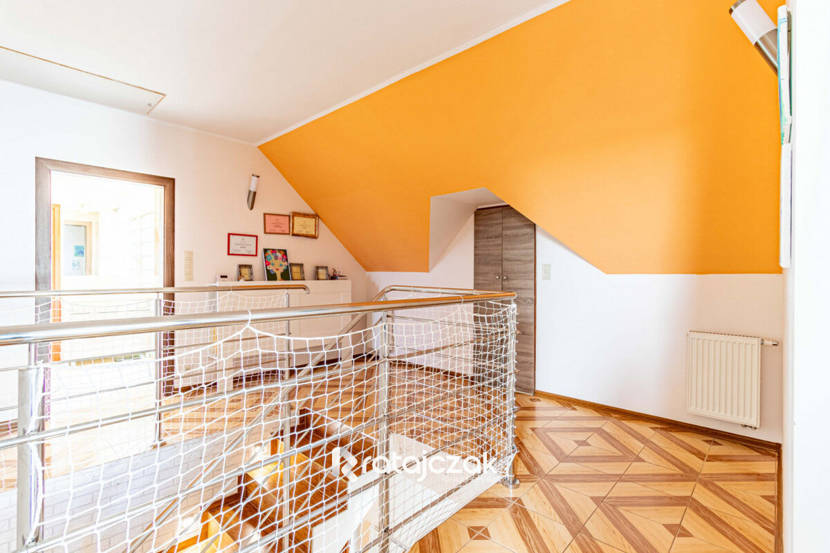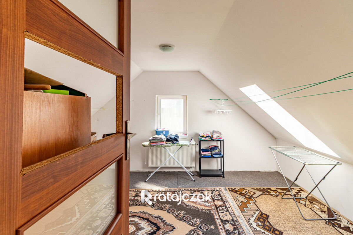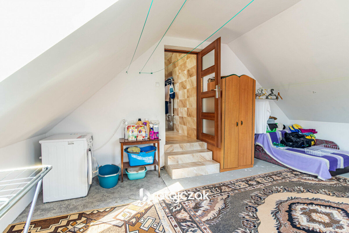 Dodatkowo w domu jest podpiwniczenie z dużym pomieszczeniem gospodarczym, a na poddaszu jest dodatkowa powierzchnia strychowa.