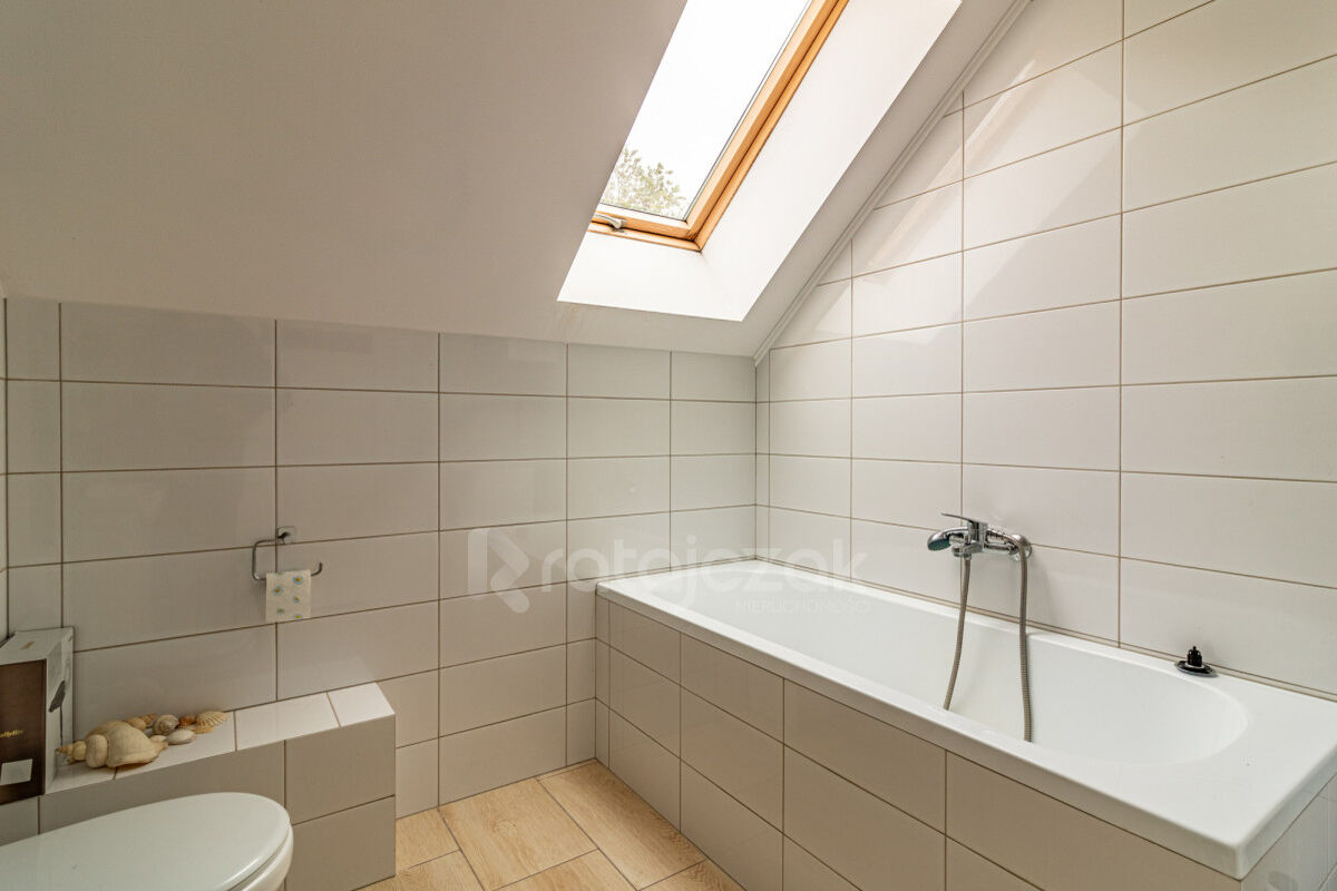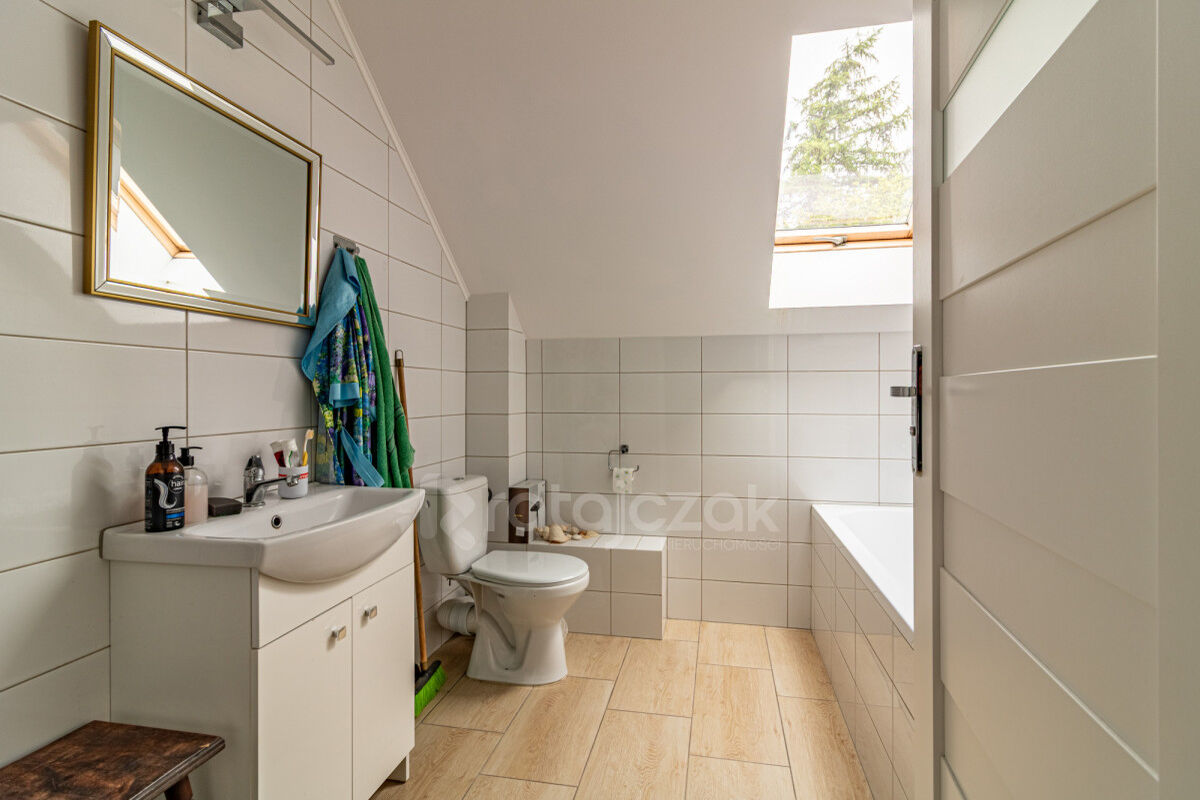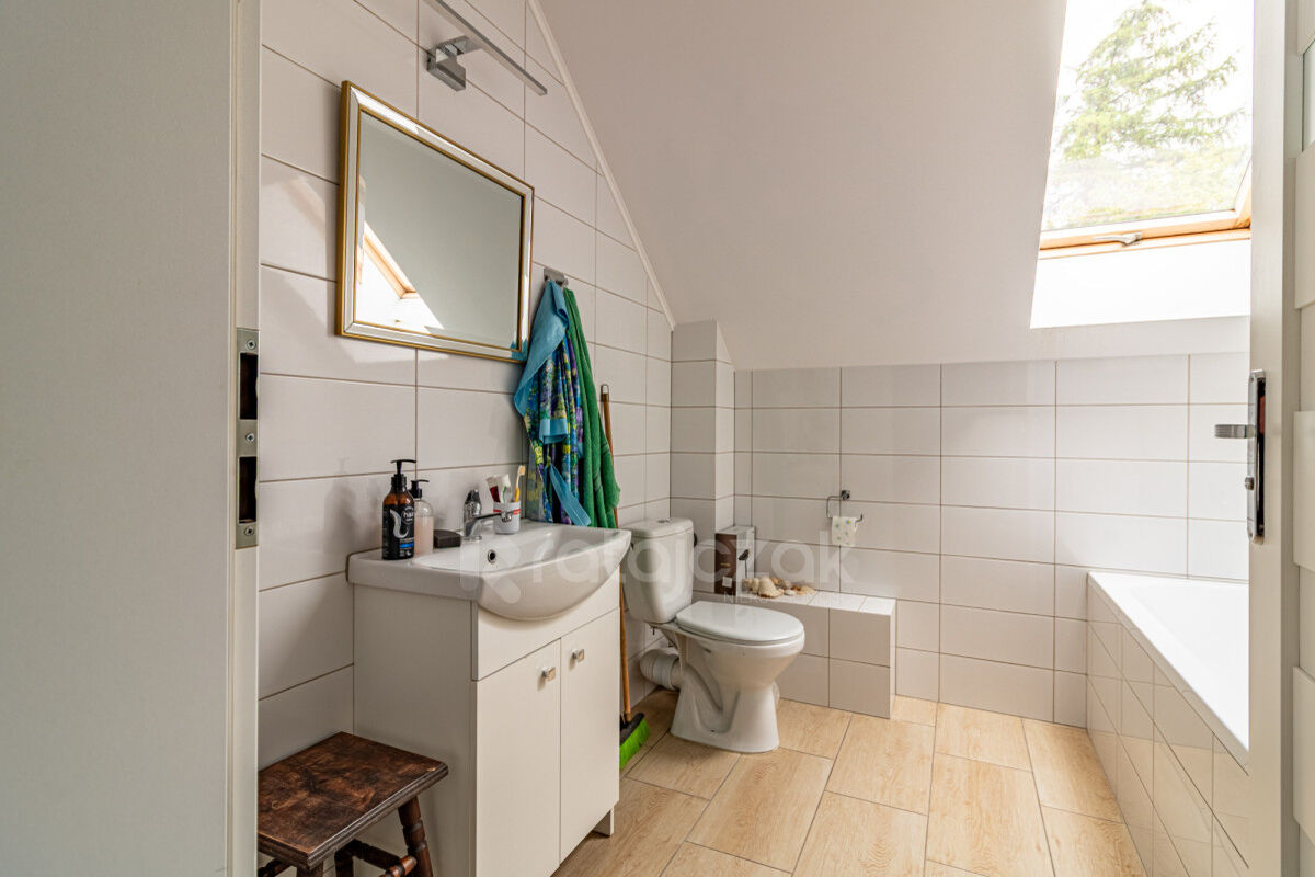 - piętro: trzy ustawne pokoje oraz druga łazienka z wanną.
