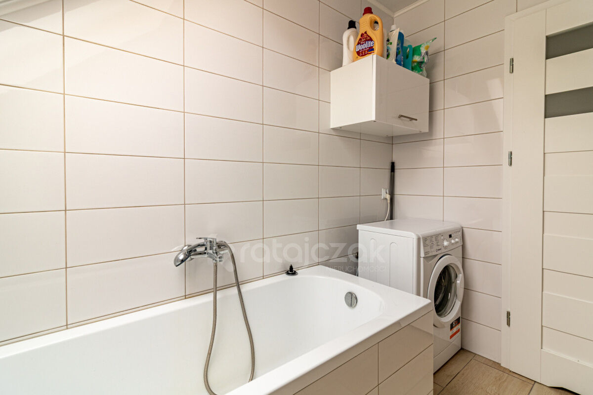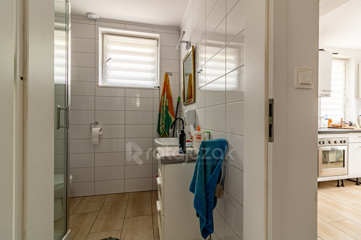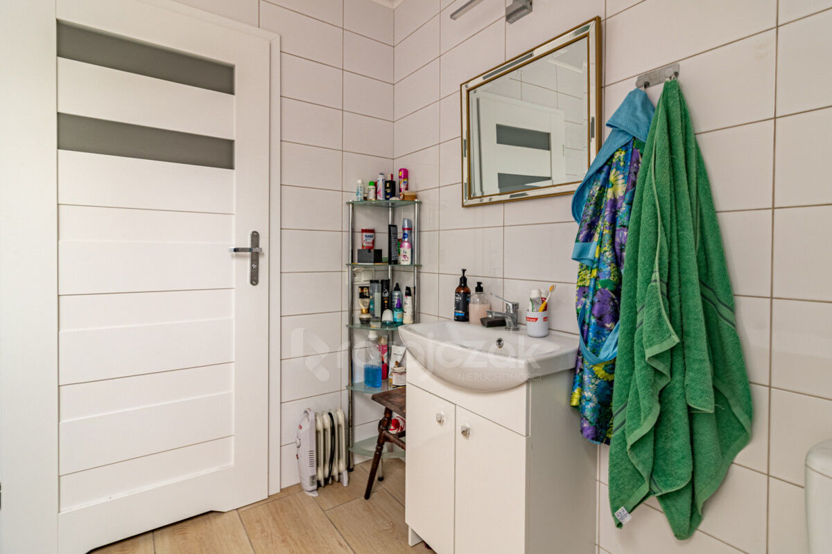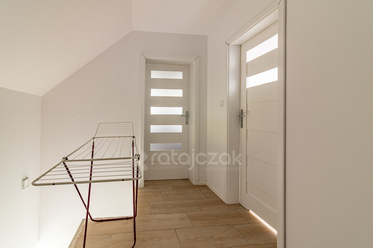 - piętro: trzy ustawne pokoje oraz druga łazienka z wanną.