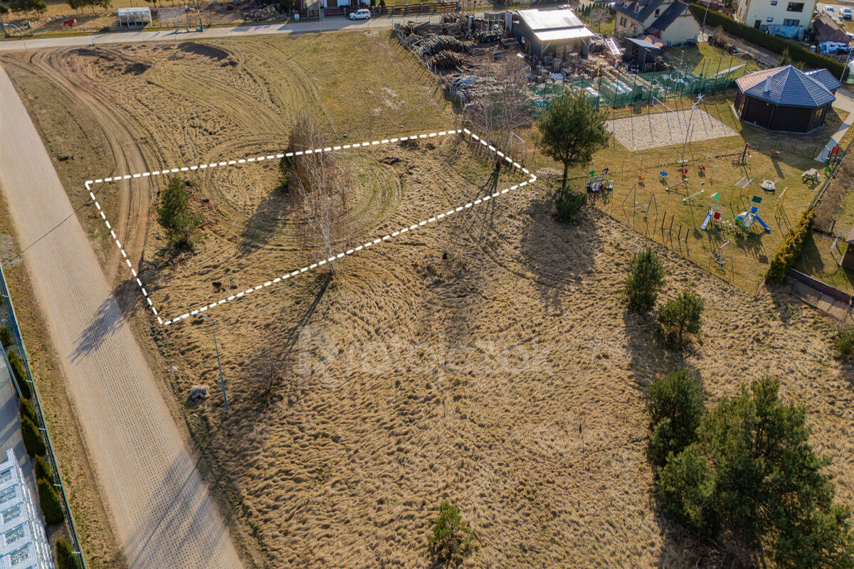 Działka:Działka o powierzchni 935 m2 z przeznaczeniem na zabudowę jednorodzinną mieszkaniową. Działka jest kształcie trapezu, płaska, zagospodarowana trawnikiem, nieogrodzona. Dojazd do działki zapewniony jest przez drogę publiczną (gminną), w której znajdują się media: woda, kanalizacja, prąd oraz przewód telekomunikacyjny.