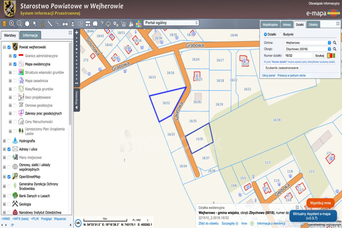 Dokładna lokalizacja po wpisaniu współrzędnych Google Maps: 54°33'03.5"N 18°18'30.1"E