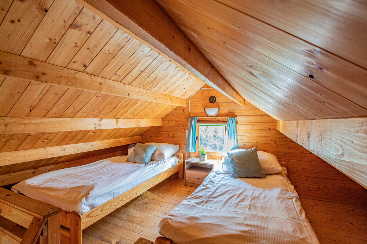 Standard: Każdy domek (pow. całkowita 25m2) pomieści do 6 osób.
