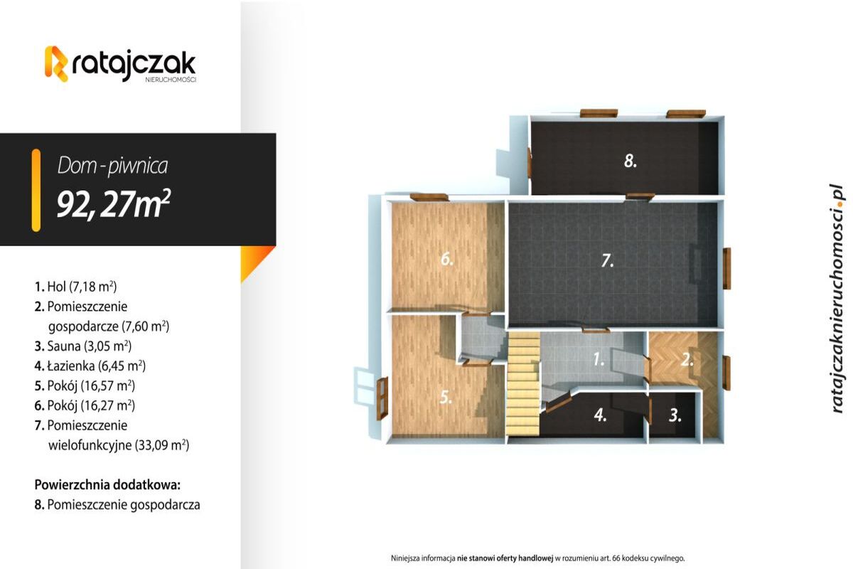 - Parter oraz Piwnica: Powierzchnia dedykowana pod funkcje biurowe. Przestronne wnętrza pozwalają na stworzenie funkcjonalnego open space, recepcji lub strefy obsługi klienta.
