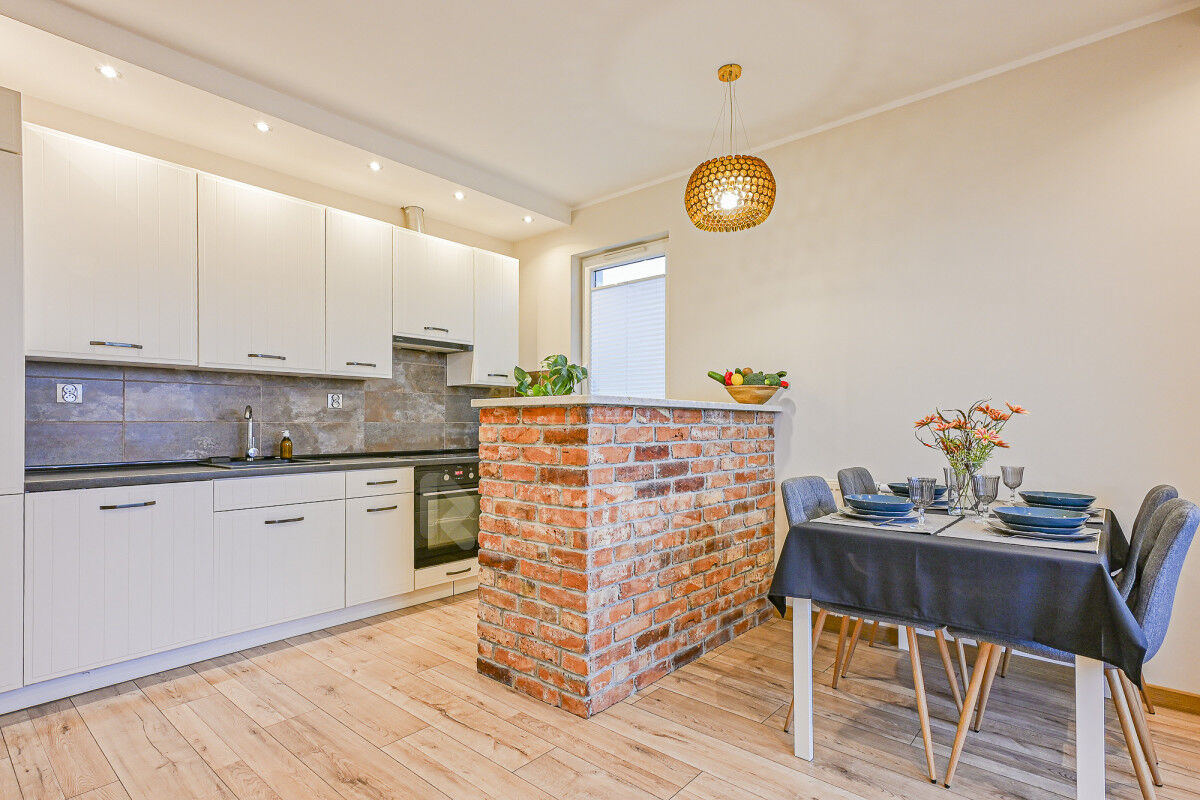 - nowoczesna kuchnia w pełni wyposażona w sprzęt AGD: lodówka, piekarnik, zmywarka, okap, płyta indukcyjna - wszystko w cenie