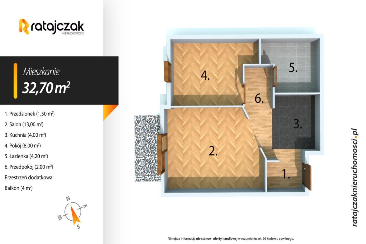 - salonu 13,00 m2 z wyjściem na przestronny balkon z ekspozycją zachodnią