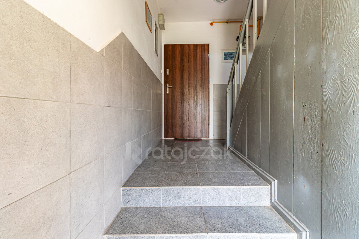 Klatka schodowa jako część wspólna o powierzchni 26,25m2. Schody drewniane, klatka remontowana w 2015r : malowanie całej klatki oraz schodów, położenie kafelek, położenie tynku ognioodpornego, wymiana drzwi frontowych.