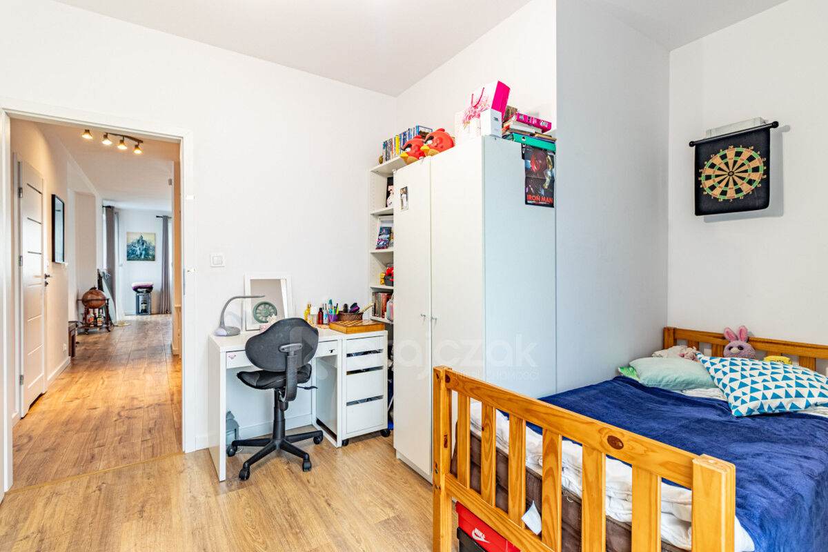 Drugi poziom (40,60 m²) to klimatyczne, zagospodarowane poddasze, które oferuje przytulną sypialnię, dodatkowy pokój, korytarz oraz drugą łazienkę. Obecność dwóch łazienek w mieszkaniu to duża wygoda, zwłaszcza dla rodzin lub osób ceniących komfort i funkcjonalność przestrzeni.