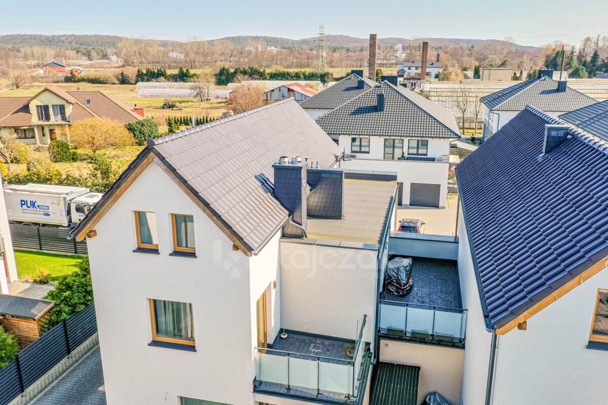 Mieszkanie mieści się szeregowcu, który składa się z 3 budynków mieszkalnych oddanych do użytku w 2019 roku. W każdym z budynków wyodrębnione zostały 2 lokale, jeden na parterze i drugi na piętrze z poddaszem użytkowym, który Państwu oferujemy. Do lokalu przynależą 2 miejsca postojowe na wyłączność oznaczone na zdjęciach czerwonymi liniami. Każdy z lokali jest ogrzewany indywidualnym piecem gazowym dwufunkcyjnym. Dużym atutem jest fakt, iż lokal jest bezczynszowy, co znacznie obniża opłaty eksploatacyjne