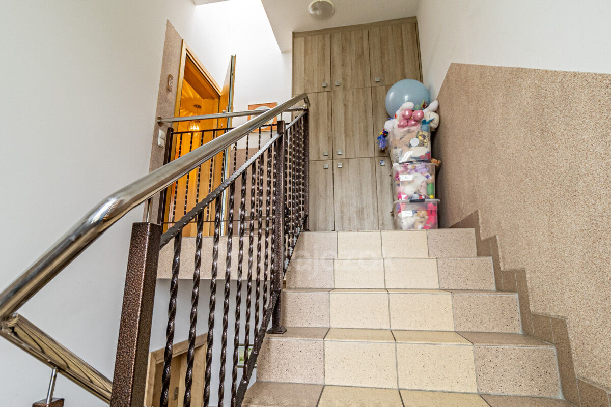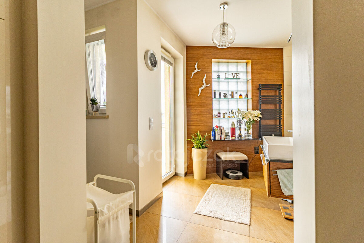 Z mieszkania można przedostać się wewnętrzną klatką schodową do pomieszczenia piwnicznego oraz do garażu bez wychodzenia z budynku, co wpływa na komfort i bezpieczeństwo mieszkańców.