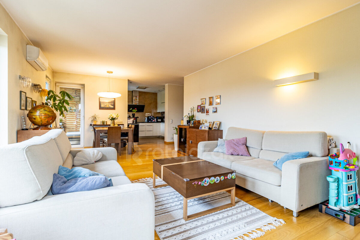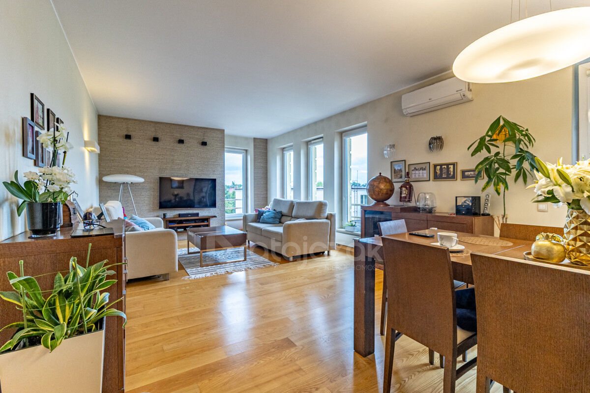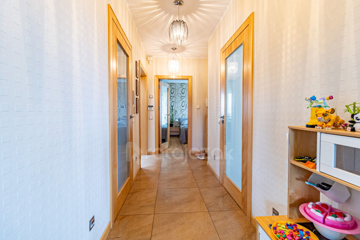 Mieszkanie o powierzchni 83 m². Projekt mieszkania został zmodyfikowany na potrzeby właścicieli tak, aby zapewnić wyjątkowy i niepowtarzalny klimat i komfort porównywalny z mieszkaniem w wolno-stojącym domu. Wykończone z użyciem materiałów najwyższej jakości, umeblowane w wysokim standardzie, bardzo funkcjonalne. Położone jest na drugim piętrze apartamentowca z 2009 roku.