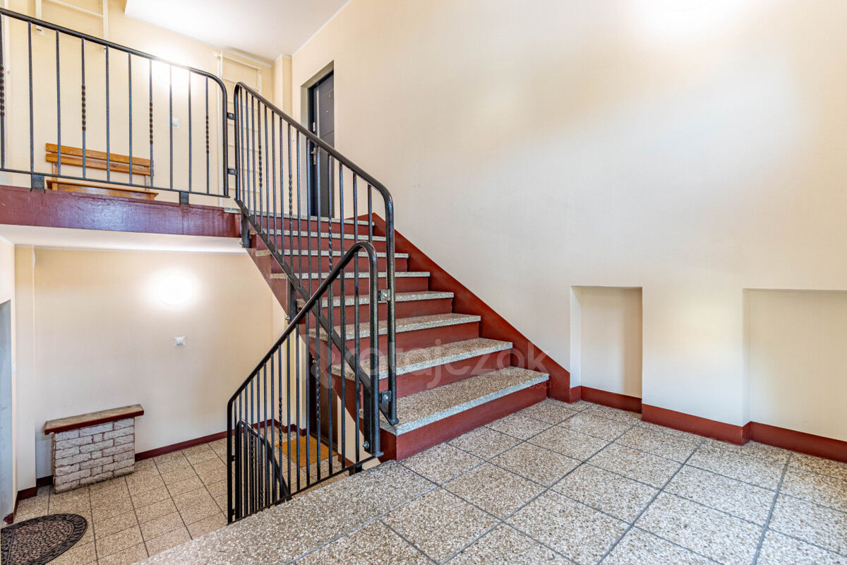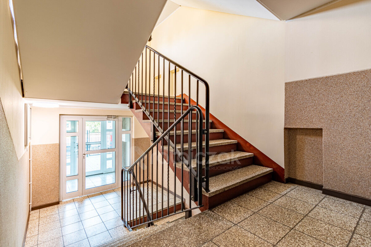 Szeroka klatka schodowa, pięknie odremontowana, regularnie sprzątana. Osiedle bezpieczne, zamknięte z monitoringiem, wejście do klatki zabezpieczone jest domofonem. Pod blokiem obszerny ogólnodostępny parking. W bloku znajduje się hala garażowa (od czasu do czasu istnieje możliwość wynajęcia lub wykupu miejsca postojowego od któregoś z mieszkańców).