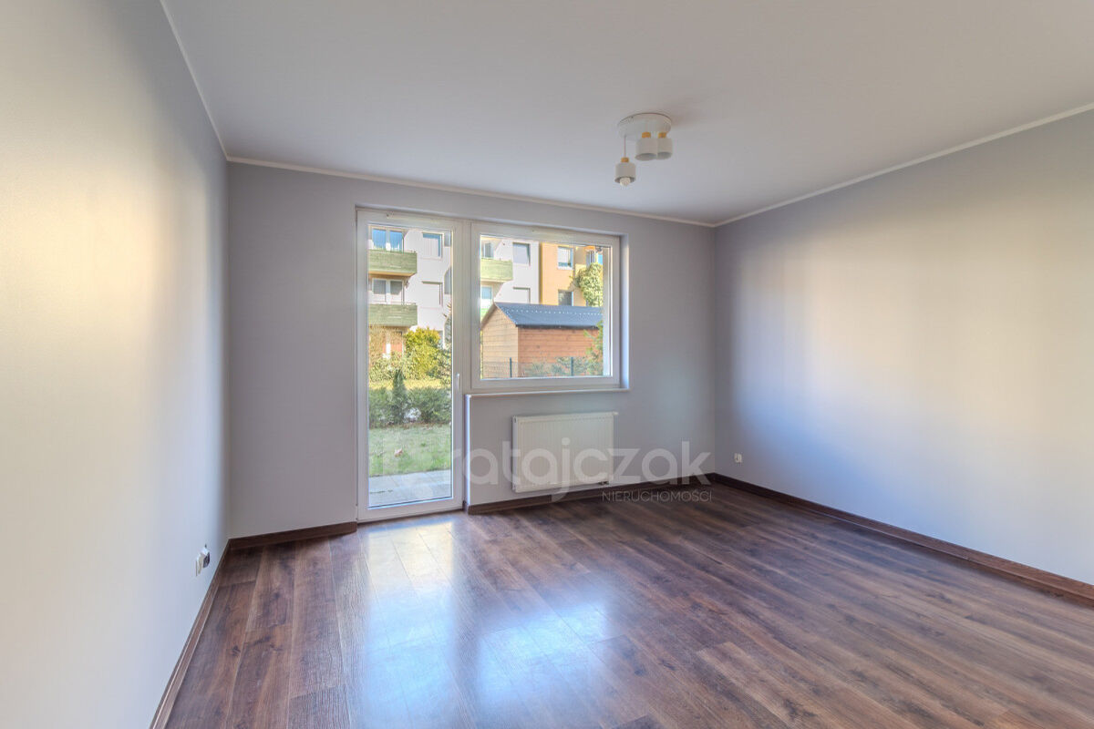 Mieszkanie zostało zaprojektowane z myślą o funkcjonalności. Salon z aneksem kuchennym stanowi otwartą przestrzeń dzienną, której przedłużeniem jest ogródek - idealne miejsce na relaks, zabawę z dziećmi czy kącik dla pupila. Pozostałe dwa pokoje doskonale sprawdzą się jako przytulna sypialnia, pokój dziecięcy lub domowe biuro.
