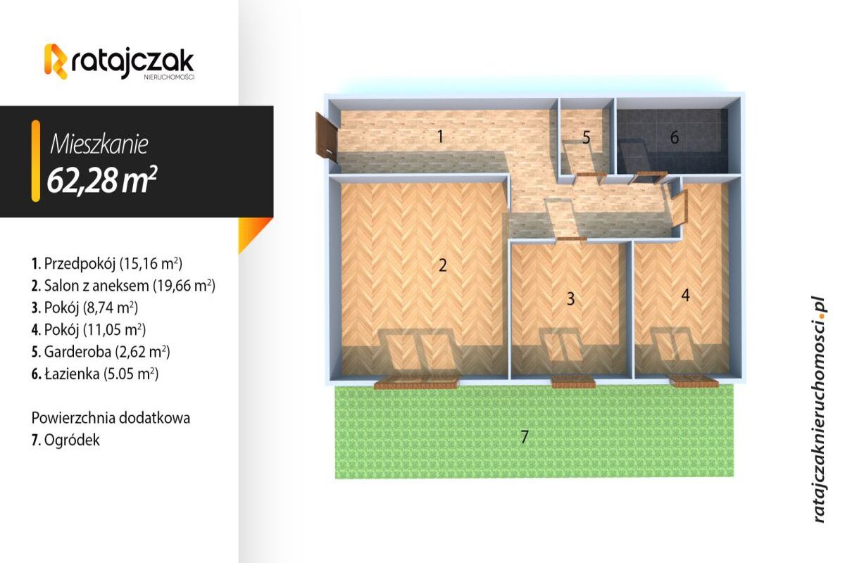 Szukasz mieszkania, które łączy spokój z miejskimi udogodnieniami? Prezentujemy przestronną nieruchomość o powierzchni 62,28 m², położoną na parterze, dostępną od zaraz!