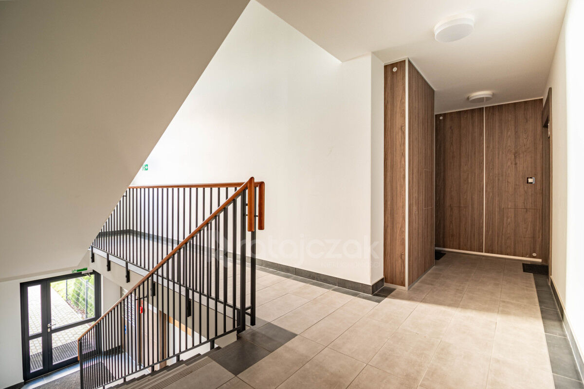 Mieszkanie mieści się w 2 piętrowym budynku oddanym do użytku w 2023 roku. Na terenie całego osiedla znajduje się wiele ogólnodostępnych miejsc parkingowych. Klatka schodowa zabezpieczona jest domofonem. Dużym atutem osiedla jest dalekie usytuowanie sąsiednich budynków, co doskonale przedstawiają zdjęcia z drona dołączone do oferty.